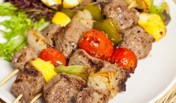 Нарежете месото на кубчета. Нарежете чушките и доматите на колелца. Поставете в дълбока тенджера ред нарязан лук, ред месо. Посолете, поръсете с черен и червен пипер, налейте виното и оставете сместа...