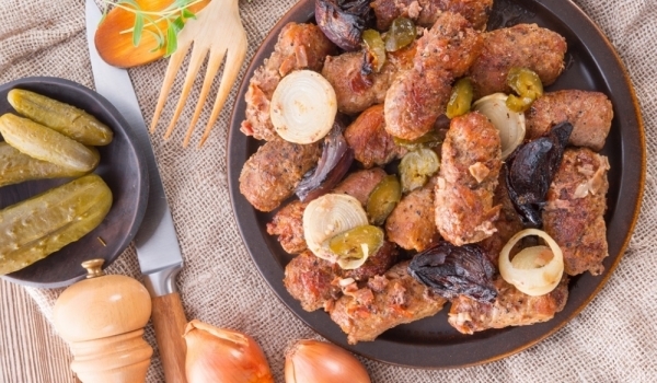 Смилат се посочените съотношения свинско и говеждо месо. На килограм кайма добавете посочените количества подправки. Може да добавите и по желание няколко сушени и стрити пиперки. Добре омесете сместа...