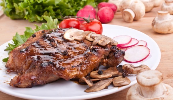 Пържолите се начукват с дървено чукче, посоляват се и се поръсват с черен пипер. Изпържват се в мазнината и се изваждат. В същата мазнина се задушават гъбите и чушките, нарязани на ситно. Сле...