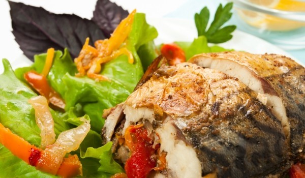 Печена скумрия с домати и магданоз