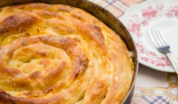 В намазана с олио тавичка се редят корите, набрани, като на всеки два реда слагаме малко от натрошеното сирене докато се запълни тавичката. Корите се нарязват на триъгълници, като за торта. В нарезит...