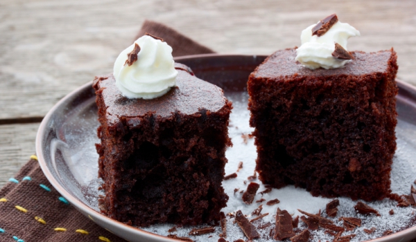 Яйцата се разбиват със захарта, добавя се брашното, бакпулверът, содата, ванилията, какаото, млякото и олиото. Сместа се разбива много добре и се добавя врялата вода. Тестото се разбърква още веднъж...