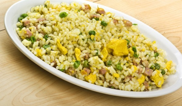 Сварете ориза, отлейте останалата вода, измийте го и го отцедете. Сгорещете олиото на силен огън. Пържете стария лук 1 мин. добавете скълцаният чесън и го оставете същото време. Сипете нарязаната на...