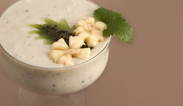 Разбъркайте всичко в шейкър кана и по желание добавете малко вода. Прехвърлете крема в малки чашки и охладете преди поднасяне.