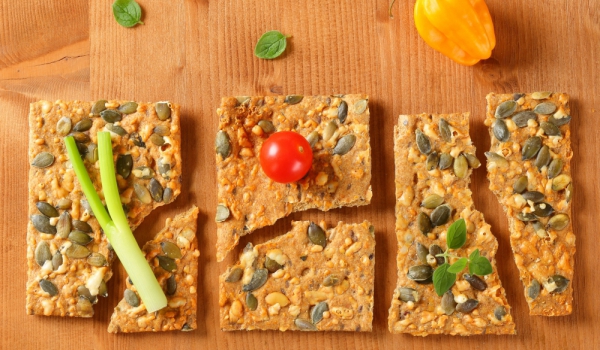 Всичко се смесва добре и сместа се разстила. Нарязва се, по желание се поръсва със семена и се изсушава за няколко часа в дехидратора или във фурната на ниски градуси.
