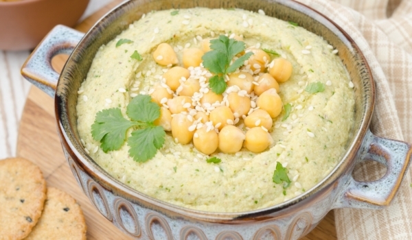 Нахутът, без да се отцежда, се пасира до гладка смес заедно с тахана, чесъна и лимоновия сок. Сервира се с препечен хляб.