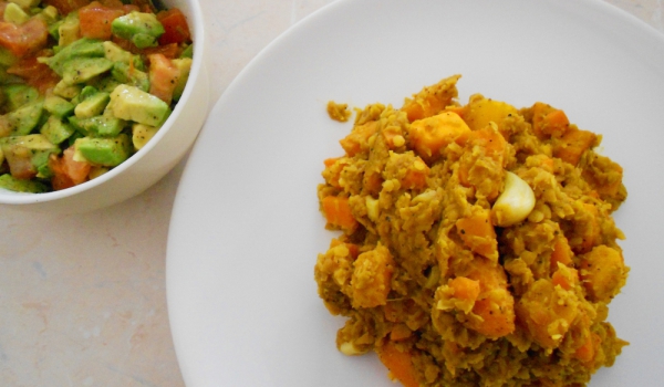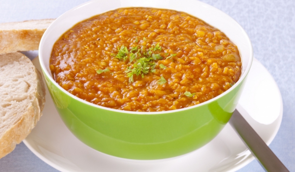 Накиснете лещата във вода за 1 час. Сипете я в тенджера с 3 ч.ч. вода, нарязаните ситно домат, лук и объркайте с куркумата и сол. Щом ястието заври, отново объркайте и сложете капак. Оставете да се...