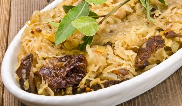 В по дълбок съд сипваме олио и оставяме да се загрее хубаво. През това време нарязваме на парчета, киселото зеле, доматчетата, праза. Добавяме към мазнината и разбъркваме хубаво продуктите. Обръщаме в...