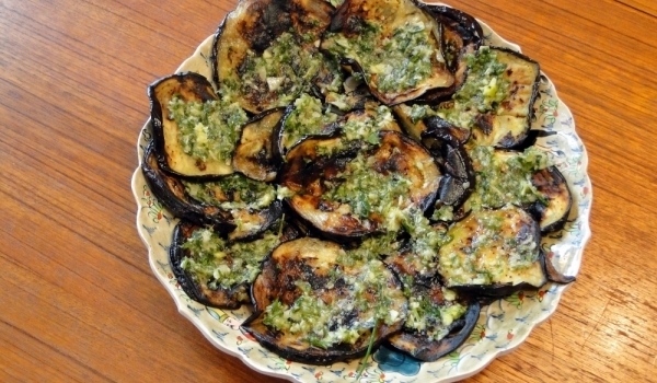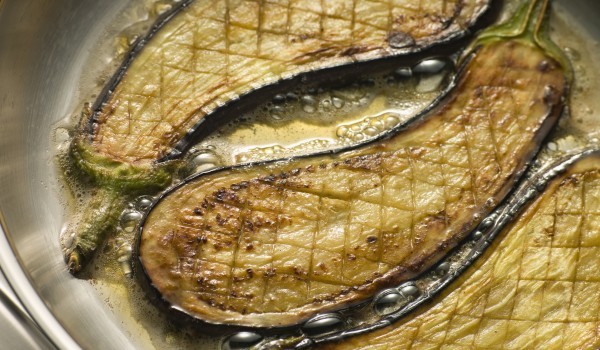 Патладжанът се обелва и се нарязва на филии с дебелина около 1 см. Посоляват се леко и се оставят да се отцедят 20-30 мин. Смесват се добре с олиото да се омажат и се изпичат на скара. Пълни се в бур...