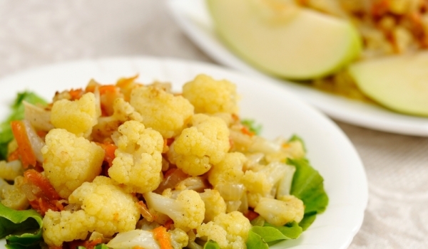Камбите, морковите, карфиолът и целината се нарязват и се разпределят в буркани. Олиото, захарта, черният пипер, бахарът, оцетът, морската сол и дафиновият лист се варят във водата. Докато е още топл...