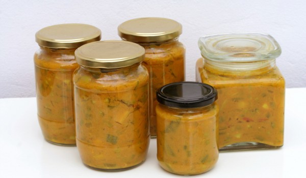 Изпечете почистените патладжани и чушки. Обелете ги и ги смелете с почистените домати. Така полученото пюре сложете да се вари на силен котлона, докато се сгъсти и излишната течност се изпари. След к...