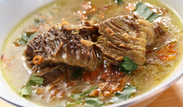 Телешкото се измива, нарязва се на парчета, слага се в тенджера и се залива с 3 литра вряла вода. След като водата заври, котлонът се намалява, добавя се дафиновият лист и месото се вари 2 часа и пол...