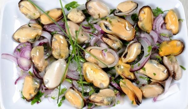 Добре почистените миди се заливат със студена вода, така че да ги покрие и се кипват. Варят се само 3-4 минути, докато се отворят черупките, след което се почистват. В дълбок съд се смесват почистенит...