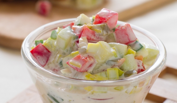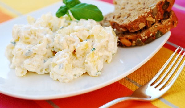 Сварените картофи се обелват и се нарязват на кубчета. Към тях се добавят лимоновият сок, солта, киселото мляко, сметаната и лютата чушка, накълцана на дребно. Синапът се запържва в зехтин и с него...