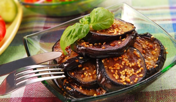 В малка купа смесете подправките и в чаша разбъркайте заедно водата, захарта и оцета. Нарежете патладжана на кръгове или парчета. В голям тиган загрейте маслото, сложете подправките, разбърквайте и сл...