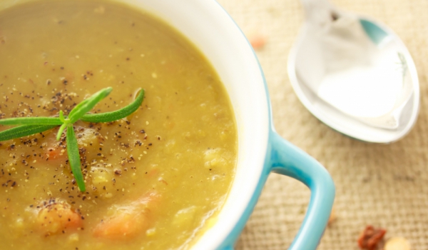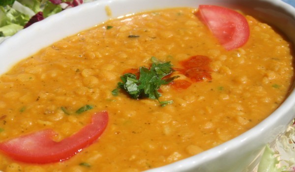 Загрейте топеното масло в голям тиган и изпържете вътре лука, чесъна, лютите чушки и куркумата. Пържете, докато лукът стане прозрачен на цвят. Прибавете лещата. Сипете вода и оставете супата да се вар...