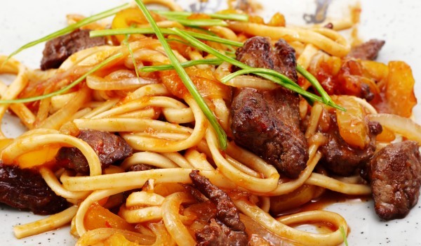 Измийте ориза и сложете да се свари до полуготовност в подсолена вода. След това го изплакнете под течаща вода в гевгир или цедка. Загрейте по-голямата част от маслото и сложете свинското на парчета...