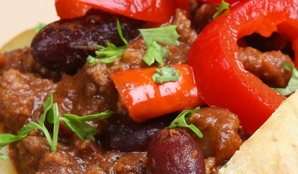 Белият боб се сварява. Месото се нарязва на малки кубчета. В олио запържваме лука, нарязан на полумесеци и чесъна. Прибавяме месото и пържим на силен огън до зачервяване. Прибавяме лютите чушки, че...