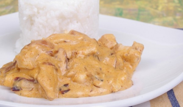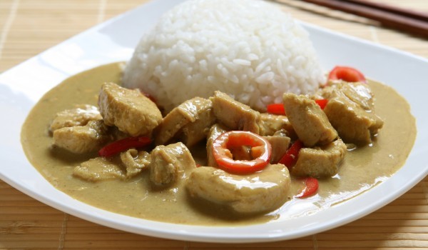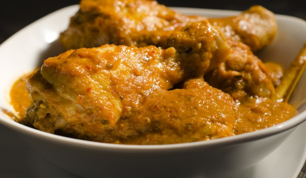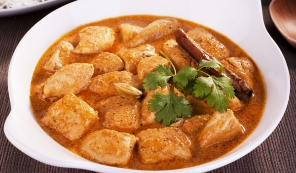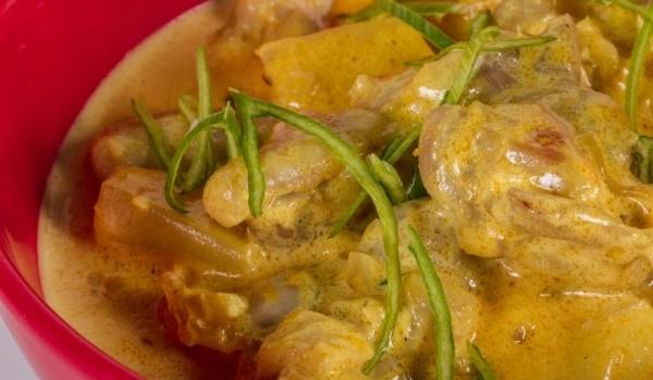 Пилешките бутчета се поръсват със сол и се запържват. Вадят се от тигана и в мазнината се запържват нарязаният на шайби лук. Добавят се пилешките бутчета, сметаната, джинджифилът, кърито, черният пип...