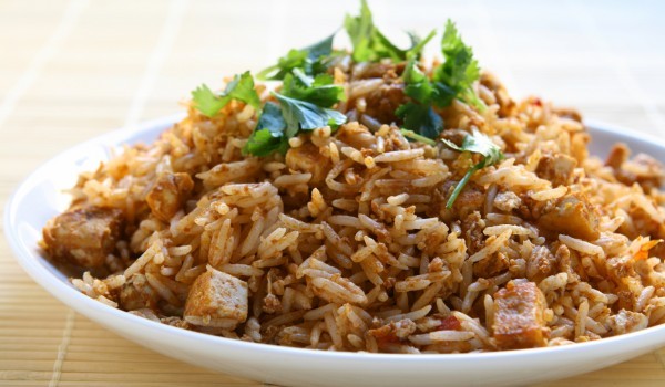 Нарязваме месото на тънки парчета, като отстраняваме мазнината. Нарязваме фино джинджифила, лютата чушка и лука. Сваряваме ориза с гореща вода, изплакваме го със студена, слагаме го в тенджера и го п...