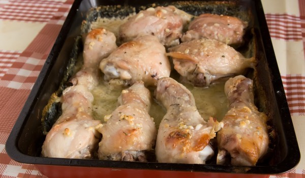 Порционирайте пилешкото. Може да използвате само горни и долни бутчета. Смесете заедно киселото мляко, пресования чесън, олиото, оцета и всички подправки. Накиснете пилешкото в тази марината и го сло...