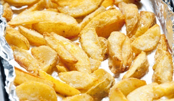 Всеки картоф се нарязва на продълговати 8 части. Сложете картофите в тенджера и ги залейте със студена вода, колкото да ги покрие. Варете картофите 5 минути, след като кипне водата и ги махнете от огъ...