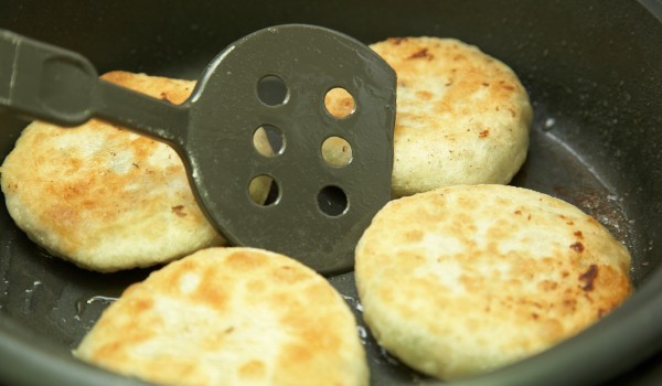 Брашното се пресява и в средата се оформя кладенче. В него се сипва солта и постепенно се добавя водата. Замесва се гладко тесто, което се оставя да почине за половин час. Готовото тесто се разделя н...