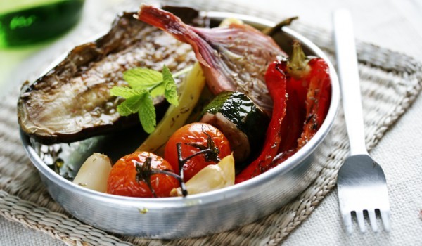 Патладжанът и тиквичките се нарязват на тънки парчета по дължина, посоляват се и се оставят да се отцедят. В това време може да изпечете чушките на фурната, да ги обелите и да ги почистите от семките....