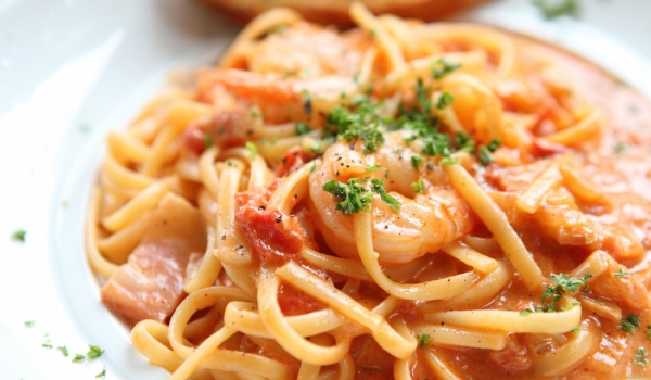 В загрятото олио се запържва брашното. При непрекъснато бъркане се сипва бульонът. Оставя се на котлона, докато се сгъсти. Добавят се нарязаните скариди, риба и сметаната. Спагетите се сваряват в по...