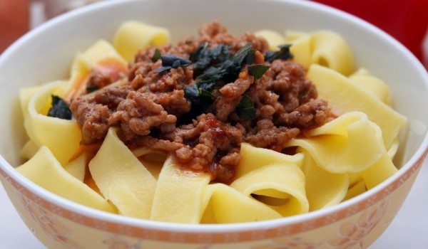 Лукът и чесънът се запържва до омекване. Прибавя се доматеното пюре, размито с малко вода. Овкусява се със солта и черния пипер. Оставя се да къкри на тих огън около 15-20 мин. Прибавя се босилекът и...