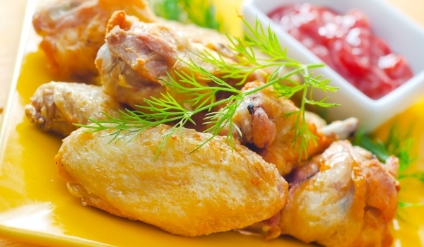 Разрежете пилешките крилца на две и ги посолете. В дълбок съд смесете настъргания кашкавал, магданоза, чушката, която сте стрили на прах и всички подправки. Намажете пилешките крилца с масло и ги овър...
