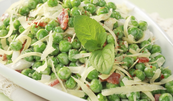 Грахът се пуска във вряща солена вода и се вари няколко минути. Трябва да омекне, без да се развари прекалено. Разпределя се в огнеупорни купички или гювечета и се поръсва с настъргания пармезан. Нап...