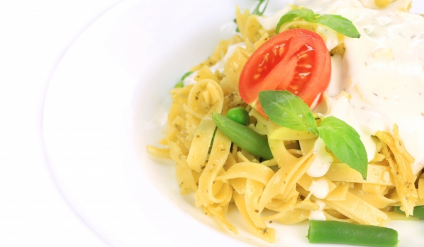 Лимонът се смесва със зехтина, ментата, розмарина, червения пипер и солта и се разбърква добре. В подсолена и вряща вода се варят грахът и фасулът, до пълна готовност. Пастата се вари според указани...