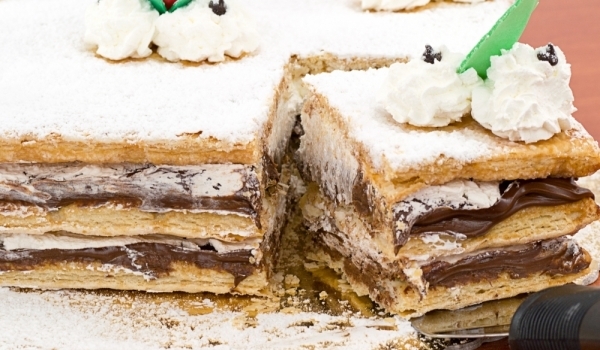 Жълтъците се разбиват с половин чаша захар. Добавят се брашното, нишестето и половин чаша мляко. Разбива се с миксер. Останалото мляко се кипва с останалата захар на бавен огън. Добавя се нишестето и...