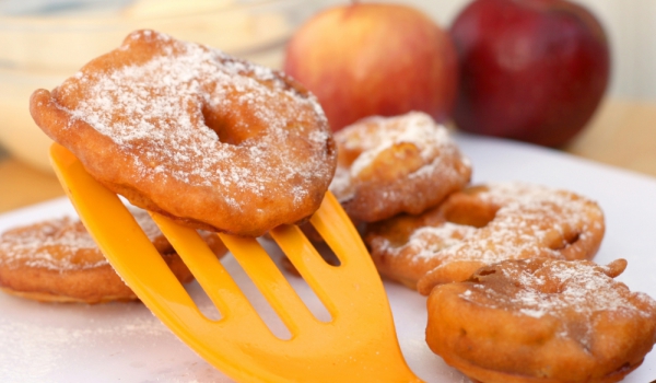 Яйцата се разбиват, добавя се ромът и захарта и всичко се разбърква. Добавя се брашното и се разбърква с миксер. Постепенно се добавя млякото. Тестото се оставя да почине половин час. Ябълките се об...