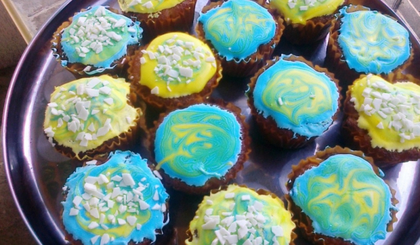 Лимонът се измива и кората му се настъргва. Изстисква се сокът. Яйцата се разбиват със захарта и се добавят олиото, лимоновият сок и кората. Всичко се разбърква и в отделен съд се смесват брашното, б...