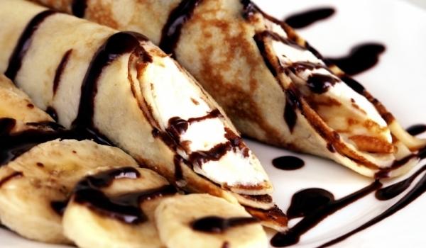 Брашното, солта, захарта, яйцата и млякото се смесват. Бананите се обелват, пасират се и се добавят в тестото. Разбърква се добре и се оставя за 1 час. В намазан с мазнина тиган се пържат палачинки....