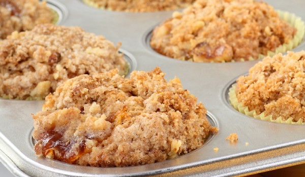 Фурната се загрява предварително до 200 градуса. Сухите съставки се поставят в купа и се разбъркват докато се смесят добре. С вилица се притискат парчетата масло и се разбърква докато сместа придоби...