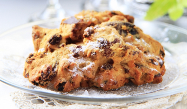 Стафидите се смесват със ситно нарязаните кайсии и тиква. От брашното се отделят две супени лъжици. Останалата част от брашното се смесва със солта, содата и омекналото масло. Добавя се сметаната и се...