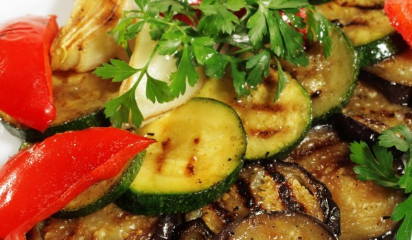 Пригответе марината от зехтин, балсамов оцет, сол, черен пипер, магданоз, риган и накълцан пресен копър. Изчистете чушките от дръжките и семките и ги нарежете на едри парчета. Патладжана нарежете на...