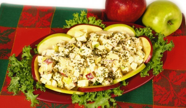 Сварете картофите, моркова и целината и ги нарежете на дълги парчета. Добавете счуканите орехи и настъргания лук и ябълка. Овкусете с черен пипер и сол и разбъркайте. Смесете зехтина, захарта, оцета,...