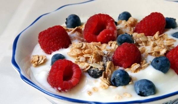 Измийте малините и боровинките добре и ги оставете да се отцедят от водата. В купичка изсипете киселото мляко и го разбъркайте. Прибавете мюслито и оставете около половин час да постои, за да омекне....