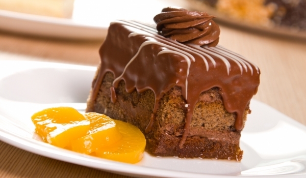 Натрошете шоколада и го разтопете заедно с маслото на водна баня, като се разбърква непрекъснато. Яйцата се разбиват със захарта на пяна, след което се прибавят шоколадовата смес, брашното и какаото....