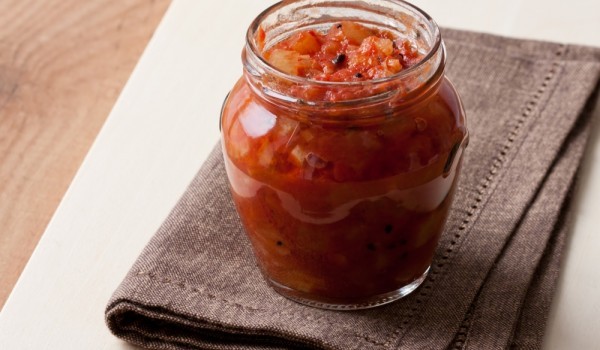 Опечете чушките и ги обелете, като отстраните семки и дръжки. Патладжана също опечете и заедно с чушките го нарежете на ситно. Сипете зеленчуците в голям съд, добавете към тях чесъна, буркана доматен...
