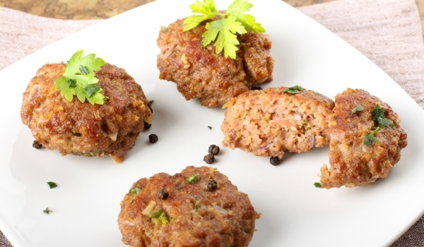 Смесете двата вида кайма с лука, чесъна, всички подправки и нарязаните фурми. Поръсете с мента и чукнете яйцата. Добре омесете сместа с ръка и накрая долейте розовата вода. Оставете каймата да престои...