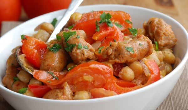 Смесете кайма с яйцето, хляба, лука, нарязан на ситно заедно с магданоза и подправките. Оформете кьофтета, подредете ги в намазнена тава, полейте ги с доматите от консерва и добавете чушките. Овкусет...