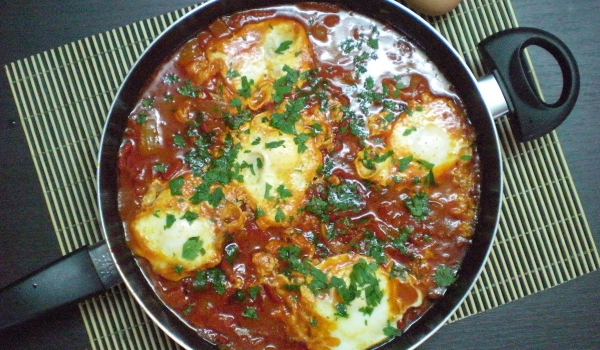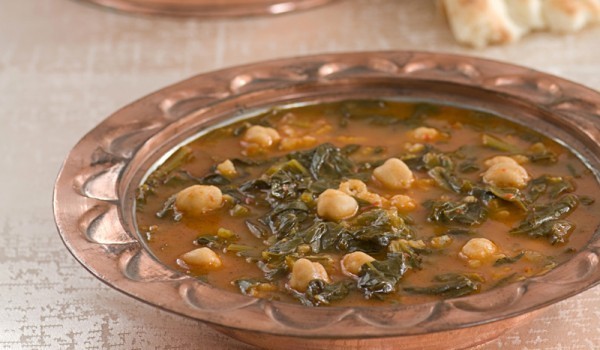 Чесънът се счуква, а лукът се нарязва на ситно и се запържват в загрeтия зехтин. Добавя се предварително почистеният, измит и нарязан на едро спанак. Задушава се добре и се добавя отцеденият нахут....