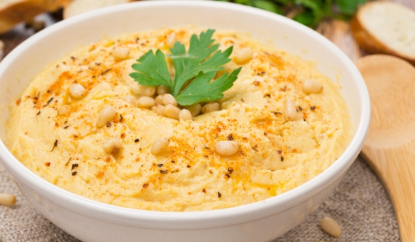 Накиснете нахута за 12 часа. След това го отцедете и смелете в блендер. Смелете слънчогледа, сусама и кашуто и ги прибавете към нахута. Нарежете лука и чесъна на ситно, задушете за няколко минути в 1...