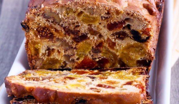 Яйцата се смесват със захарта и брашното. Добавят се филираните бадеми. Стафидите се измиват, отцеждат се и се добавят в тестото. Смокините се нарязват на ситно и се добавят в сместа. Добавя се канел...