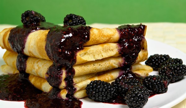 Разбийте яйцата със захарта и прясното мляко. Добавете постепенно солта, брашното с бакпулвера, а накрая объркайте сместа с разтопеното масло с помощта на телена бъркалка. Загрейте малко мазнина в ти...